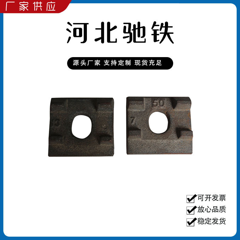 主要產(chǎn)品:鐵路配件、行車配件、工礦配件、魚尾板、道釘、壓軌器、軌道壓板、軌距拉桿、護(hù)軌扣板、T型螺栓、魚尾螺栓、彈條、軌距擋板